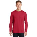 A soft cotton hand merges with color-locking, moisture-wicking performance in this tee that also has a matte finish.